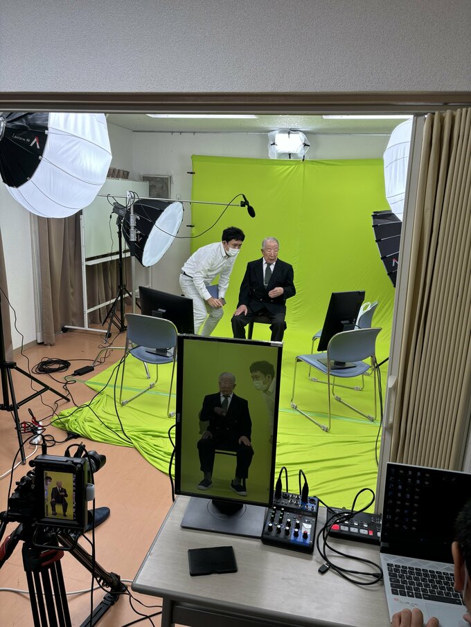 西岡さんの映像の収録は、昨年10月に自宅近くで行われた。普段の講話で話している内容に加えて、170を超える質問に対して答えてもらう様子を4Kカメラで収録。2日間にわたり、10時間以上に及んだ。