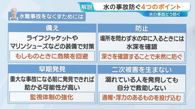 本当にこの4つをしっかり守っていただくと、かなりの水難事故を防止することができますので、ぜひとも覚えて、海や川で楽しく遊んで欲しいと思います。