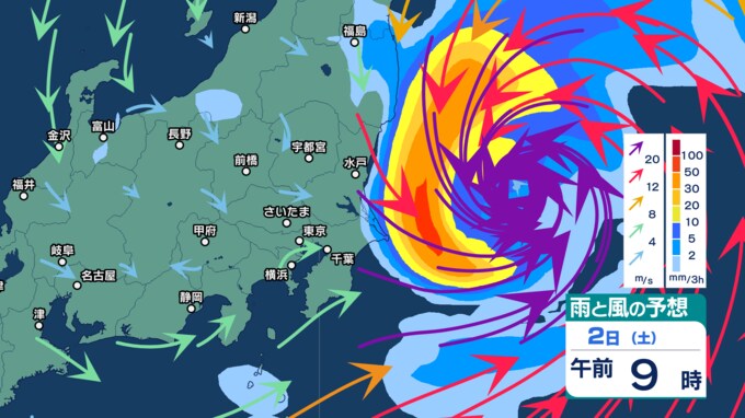 【台風情報・午後4時半更新】関東・東北地方に1日〜2日にかけ最接近へ 台風9号(クローサ)15m/s以上の「強風域」伴い時速15kmで北上中 今後の進路は?【気象庁の最新情報・雨風シミュレーション】 青森テレビ 2025年8月1日(金) 16:40 国内 【関東甲信版】 台風9号最接近時の雨風シミュレーション 2日(土)午前3時~正午