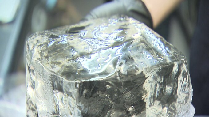 純氷は、水道水をろ過して不純物を取り除き、じっくりと時間をかけて凍らせたものです。これを削ると、ふわふわのかき氷ができます。