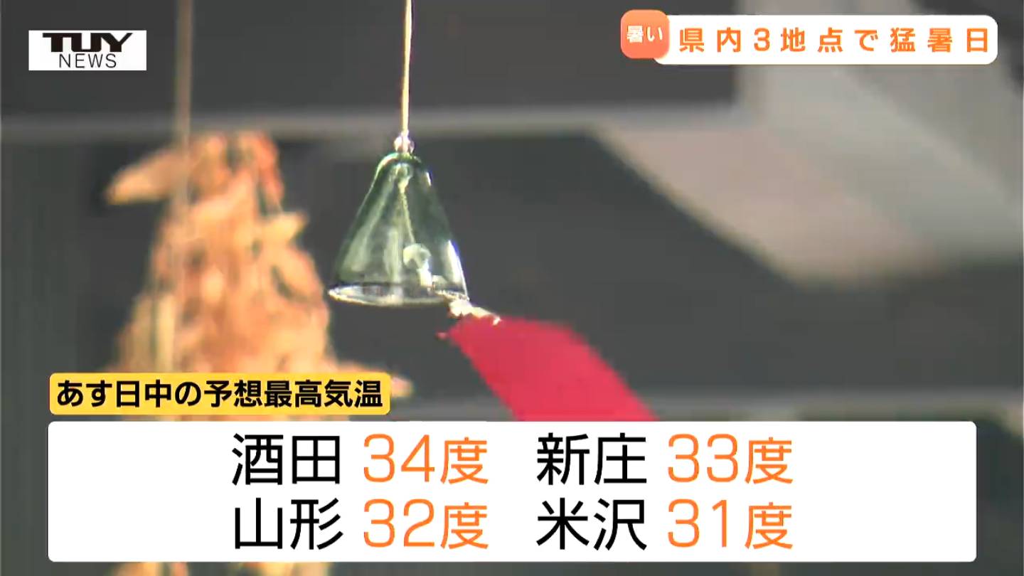 日中の最高気温は酒田で36.6度、酒田市浜中で36度、鶴岡で35.9度となり、鶴岡では今年の最高気温を更新しました。また、県内に22ある観測地点のうち3地点で35度以上を観測し猛暑日となりました。