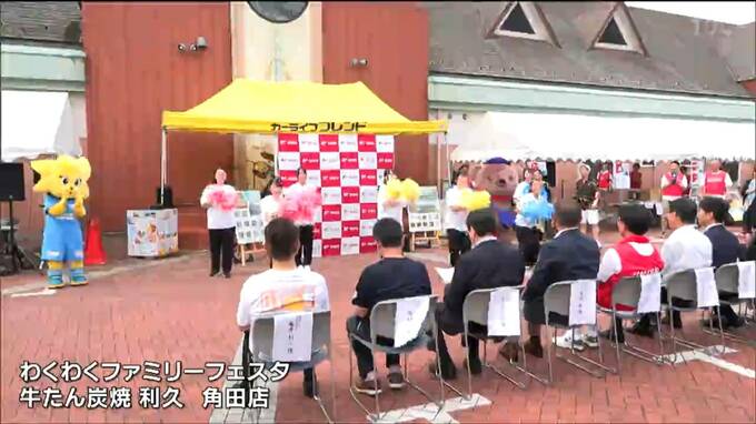 角田市の「牛たん炭焼 利久 角田店」で開かれた「わくわくファミリーフェスタ」。会場では市内にも駅がある阿武隈急行をデザインした実写版とジオラマ版のオリジナルフレーム切手が販売され鉄道ファンが買い求めていました。