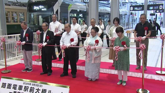 広島電鉄の新たな路線、駅前大橋ルートが開業し、日本で唯一、新幹線のあるターミナル駅2階への路面電車の乗り入れが始まりました。広島駅で3日朝行われた出発セレモニーには、地元住民や鉄道ファンたちが詰めかけました。