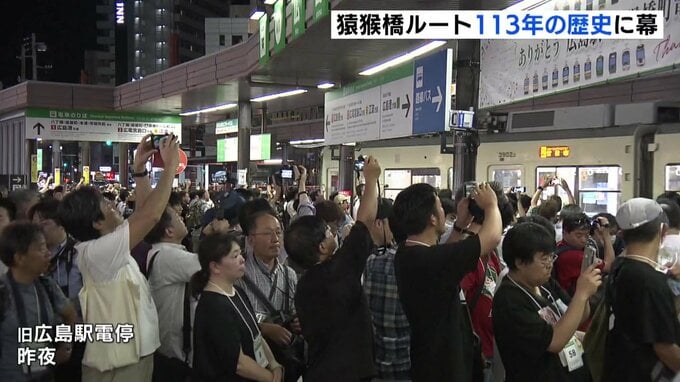 一方、駅前大橋ルートの開業で役目を終えた広島駅の平面電停には、2日夜、名残を惜しむ人が集まりました。