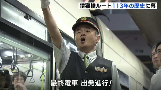 電車は、駅前大橋ルート開業で唯一廃止となる猿猴橋町電停にも停車し、最後の別れを告げました。