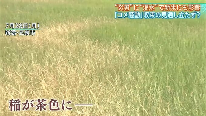 “コメどころ”新潟県の田んぼ。本来、青々としているはずの稲が茶色くなっていました。