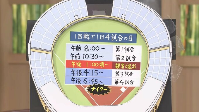 そして2025年、選手が甲子園の暑さに慣れていない1回戦を中心に、午後1時から4時までの最も暑い時間帯には行わず、ナイター設備を活用して夜間に行うことが決められました。試合が中断される間は、観客もいったん球場の外に出なければいけません。