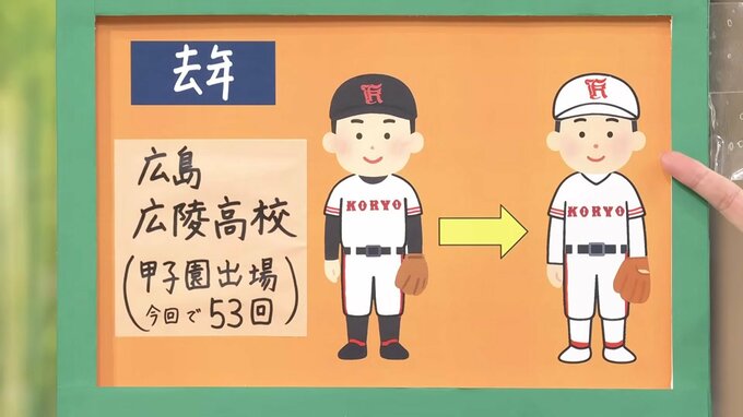 例えば、甲子園出場53回を誇る広島の名門・広陵高校は2024年、伝統のある帽子の色を黒から白に変更し、アンダーシャツとストッキング、スパイクも白くしました。2025年は南北海道・北海高校が、衣服全体を黒系から白系へと変更します。