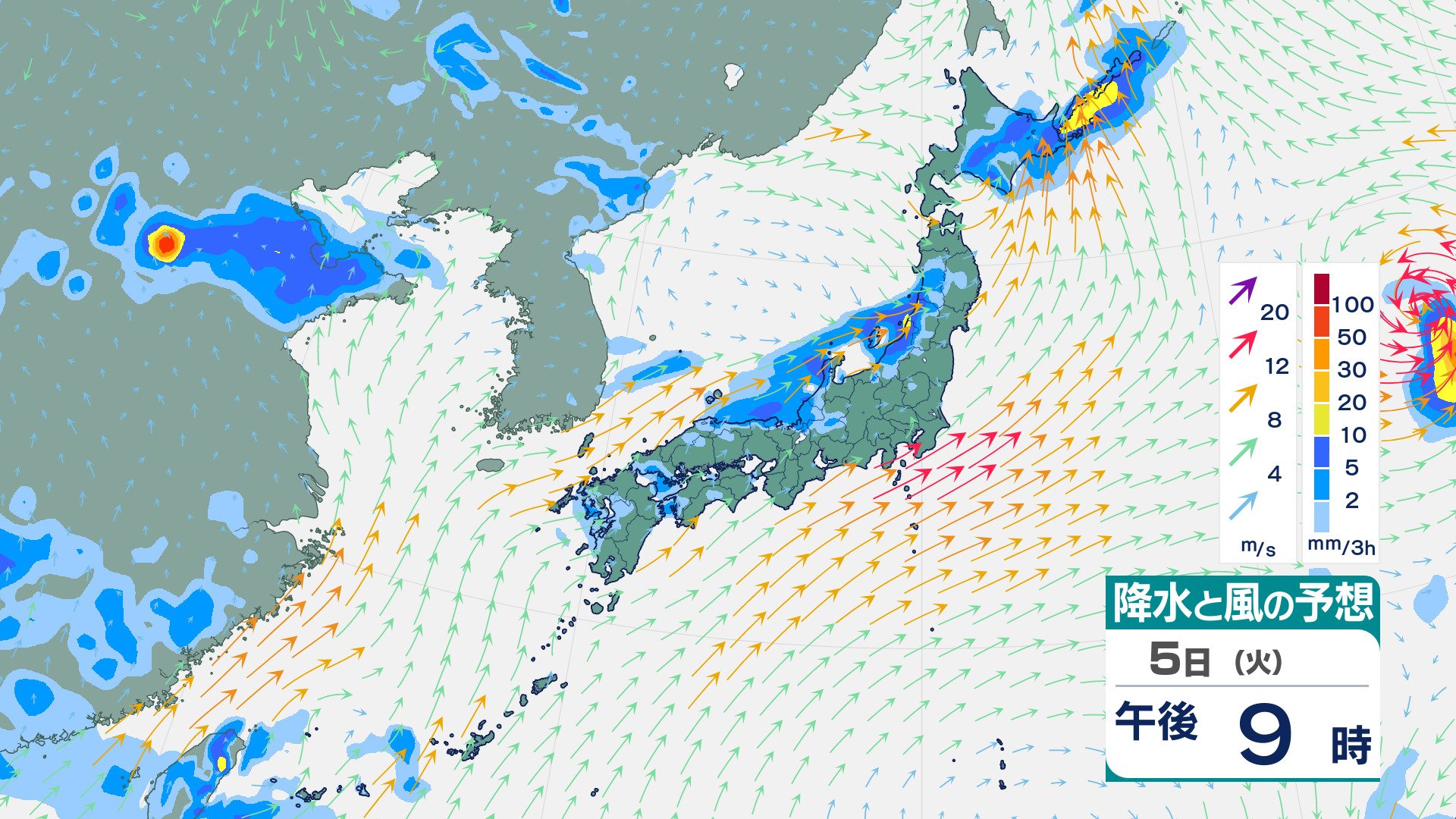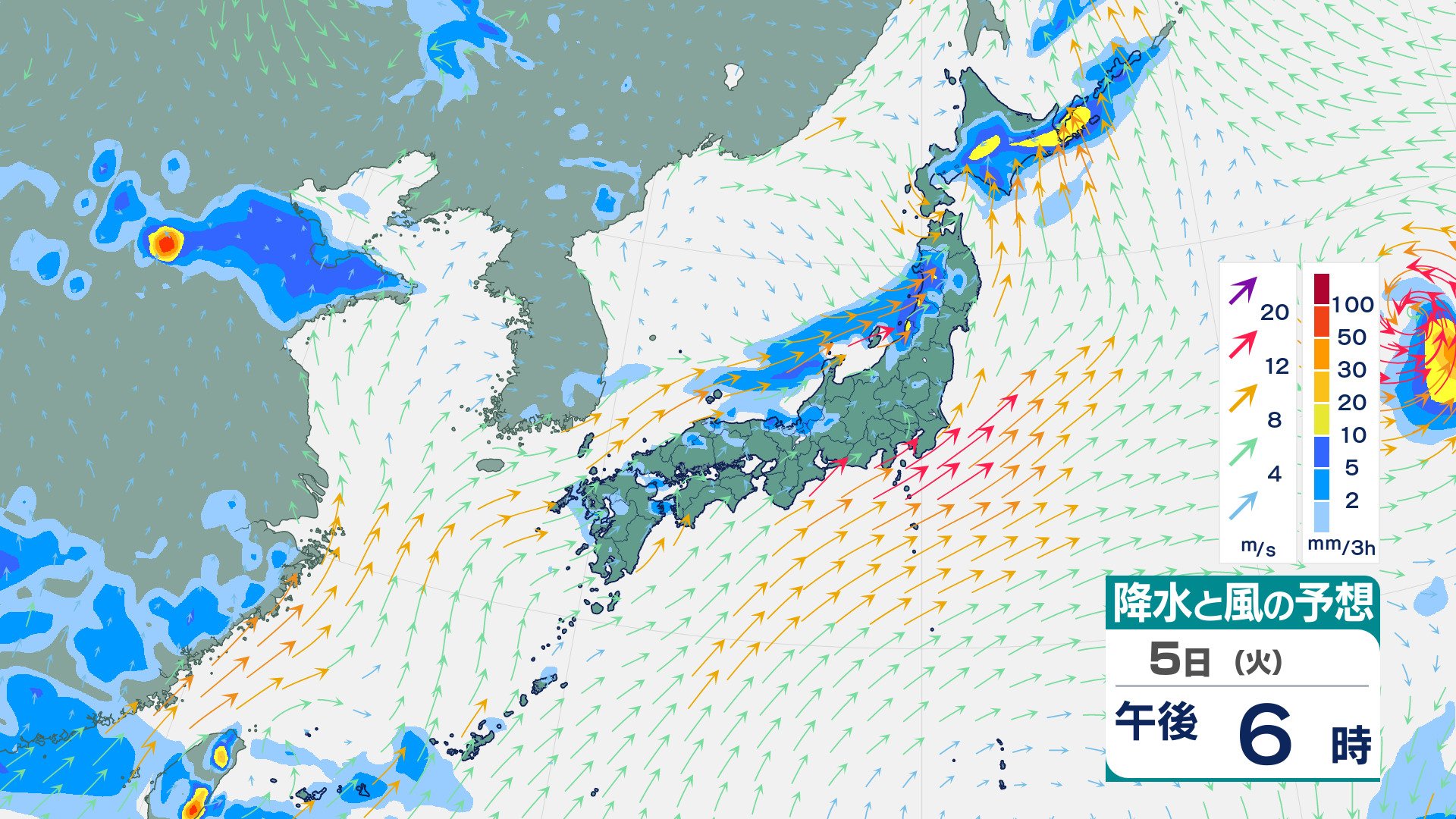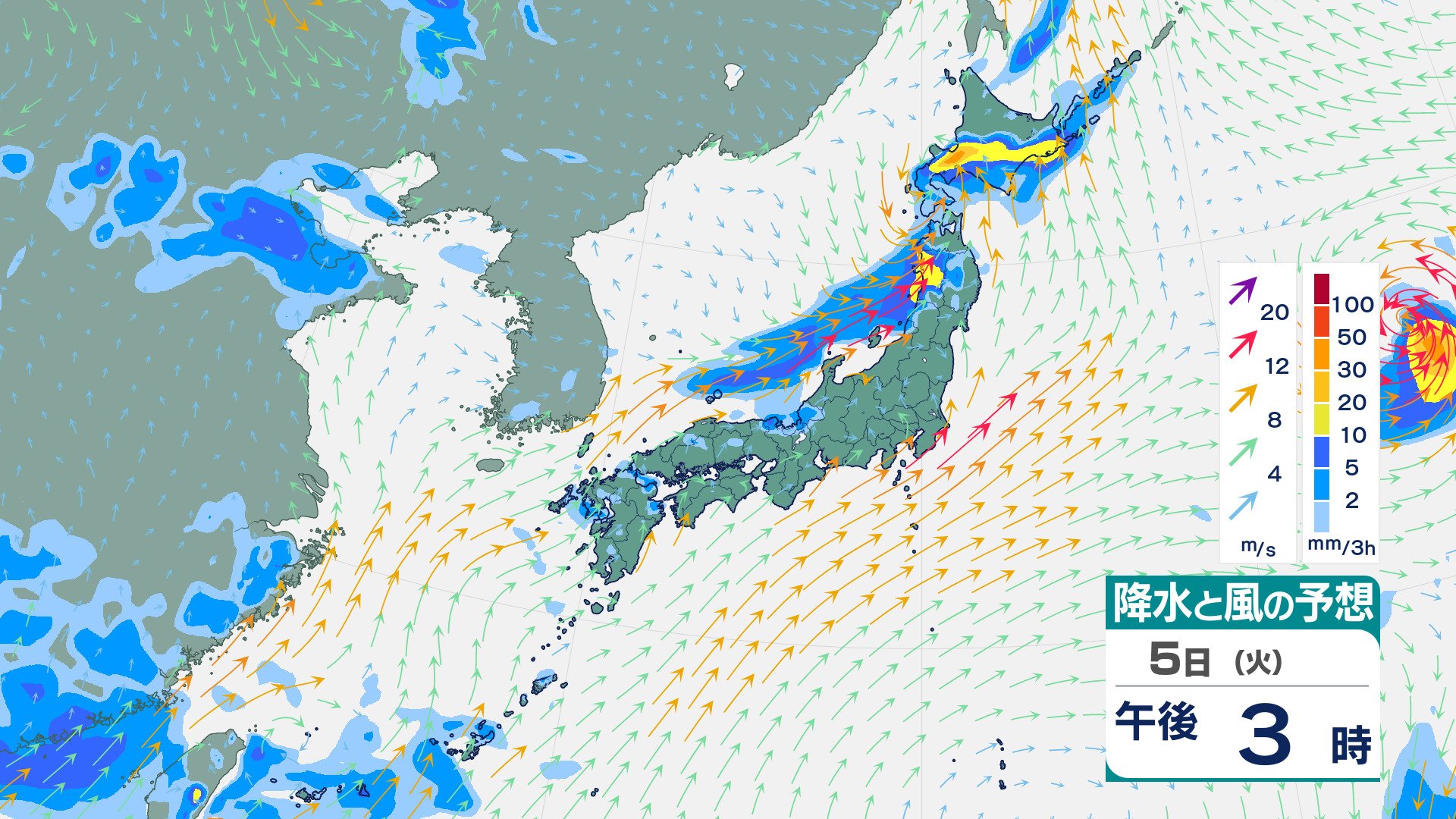 【大雨情報】東北日本海側北部は低気圧や前線の影響で、5日に大雨となる所がある見込み 警報級の大雨となる可能性も…【雨と風のシミュレーション】 チューリップテレビ 2025年8月3日(日) 16:59 国内 天気 5日(火)の雨風シミュレーション
