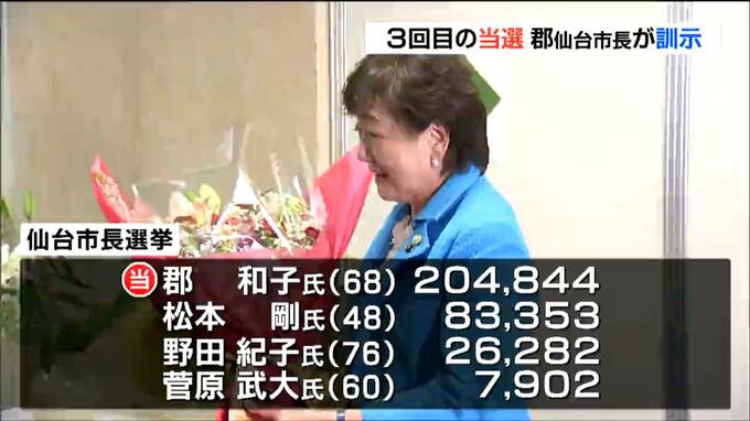 3日に投開票が行われた仙台市長選挙で3回目の当選を果たした郡和子市長が4日、市役所に登庁し職員に「恐れることなく様々な提案をしてほしい」などと訓示しました。郡仙台市長は4日午前、およそ100人の職員に出迎…