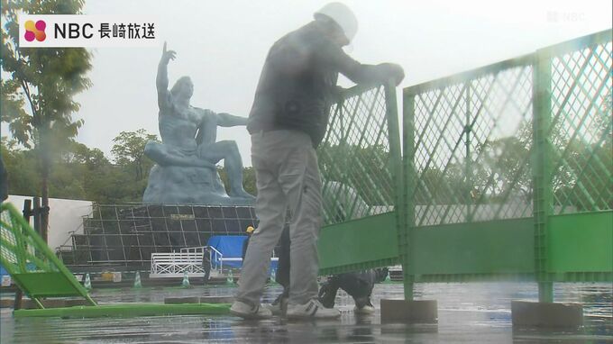 長崎市の平和公園ではけさから市の委託を受けた作業員らが平和祈念式典で使われる大型テントの設営に入りました。
