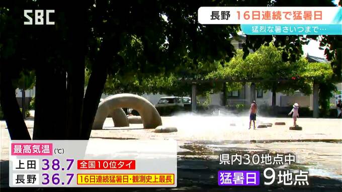 長野では観測史上最長を更新する16日連続の猛暑日となりました。