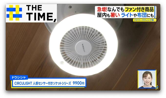 サーキュレーターの外周にぐるりとLEDのライト…照明器具とファンが一体となった「CIRCULIGHT 人感センサー付き ソケットシリーズ 」(ドウシシャ/9900円)です。