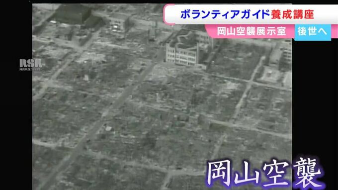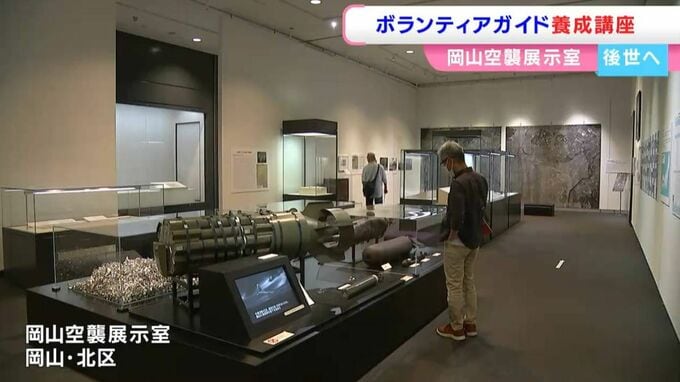 企画展の開催時など以外は常駐の職員がいないため、大人数の見学の受け入れも困難な状況だといいます。そんな中、去年始まったのが、市民団体などによるボランティアガイド養成講座。ガイド1期生となったのは市民団体のメンバーです。1年かけて空襲について学び、先月、13人がガイドとしてデビュー。今年の受講生たちに展示室を案内しました。