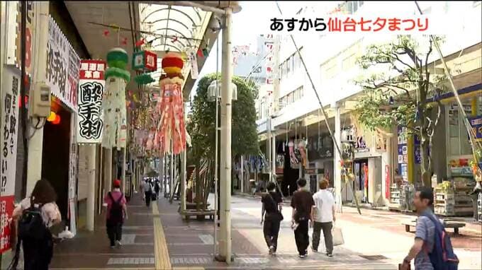 杜の都の夏を彩る仙台七夕まつりを6日に控え、仙台市内の商店街には、七夕飾りが設置されて、まつりの開幕を待つだけになっています。5日夜は、まつりの前夜祭の「仙台七夕花火祭」が開かれます。いよいよ6日開幕…
