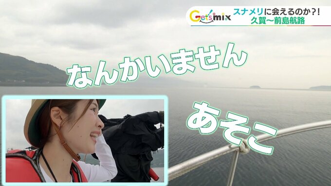 「あー、いるかな?どうだろう…スナメリ、スナメリちゃん!なんかいません?あそこ!左前出た出た!すごいすごい!こんな近くにいるんだ!」