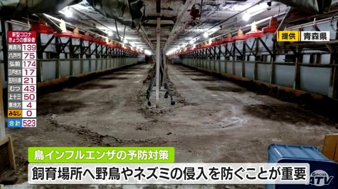 鳥インフルエンザの予防は、飼育場所への野鳥やネズミの侵入を防ぐことが重要とされますが、野鳥などが鶏舎内に入り込まないように窓がまったくない「ウィンドレス型鶏舎」でも感染が確認されているため、青森県養鶏協会の会長は4月、青森テレビの取材に「防ぎようがない」と答えています。