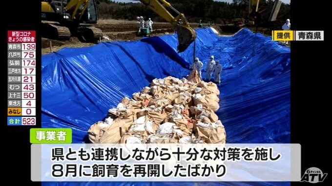 農林水産省のまとめでは今シーズン、全国で鳥インフルエンザの発生が相次いでいて、「家きん」では横浜町の事例が13例目となります。ただ、今回は4月に発生した同じ農場での再発生で、関係者に衝撃が走りました。
