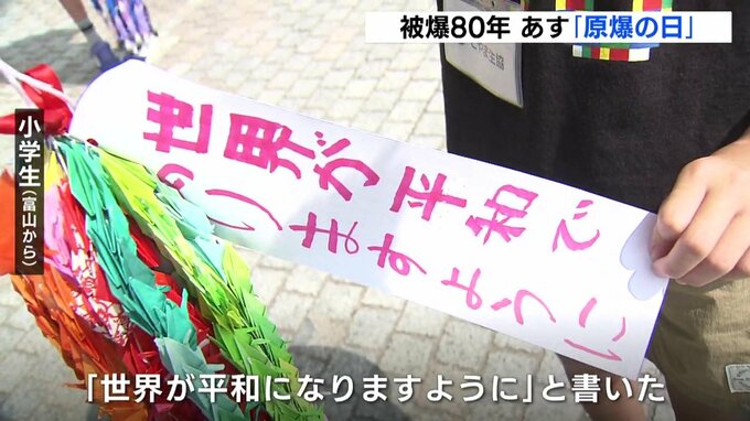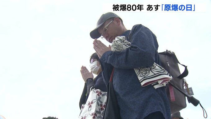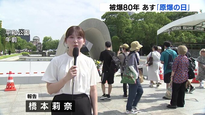 記者「被爆80年を迎える平和記念式典、あす行われますが、朝から多くの方々が手を合わせています」