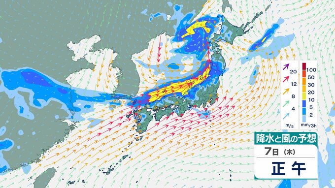 【大雨情報】北陸地方、7日にかけて大雨に厳重警戒 新潟では1時間に40ミリ予測 警報級の可能性も…土砂災害や浸水、河川の増水に十分な注意【雨風シミュレーション】 チューリップテレビ 2025年8月5日(火) 12:28 国内 天気 7日(木)の雨風シミュレーション