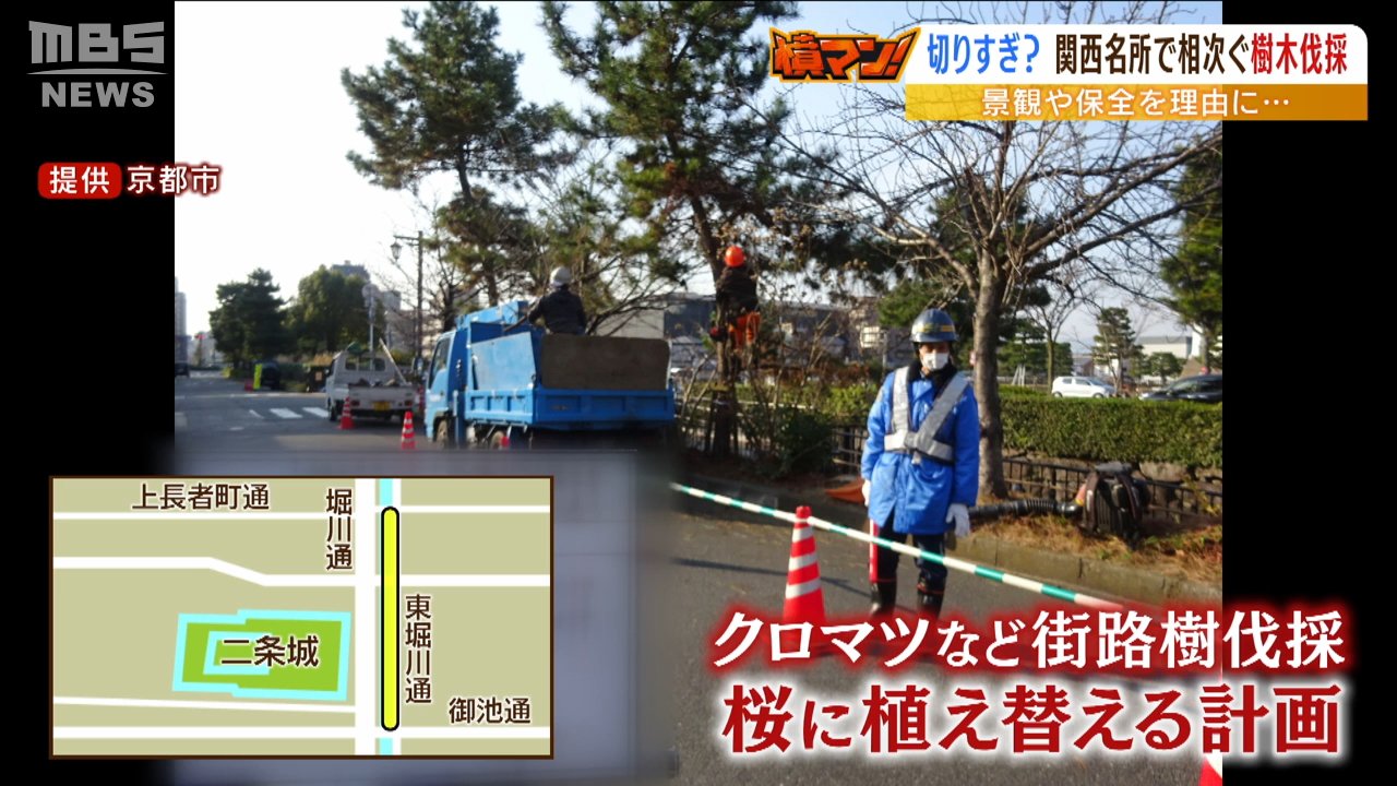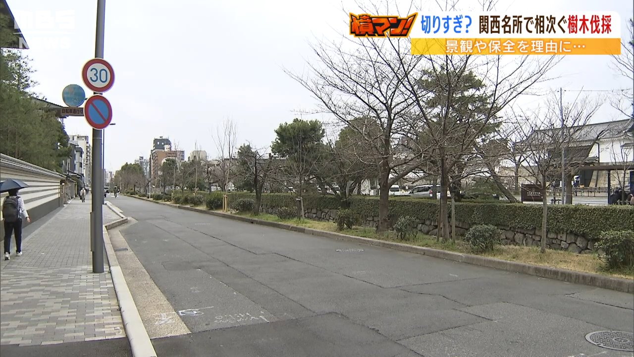 景観や保全を理由に伐採される樹木。古都・京都にある世界遺産「二条城」の周辺でも“ひと騒動”起きていました。二条城の近くに住む小林篤さん(54)は、去年12月ごろから二条城の東側に並んでいた「クロマツ」などの街路樹30本ほどが次々と伐採されたといいます。