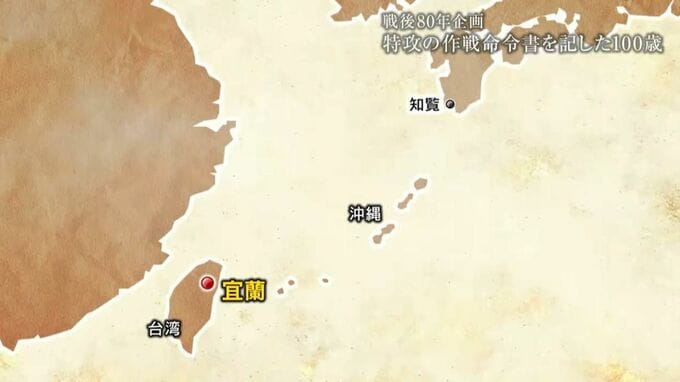 飛行学校を卒業後は、台湾の宜蘭(【画像⑤】地図参照)にある特攻隊の作戦室に所属。文字を書くのが得意だった多胡さんは、出撃の命令書を書く任務に就けられました。