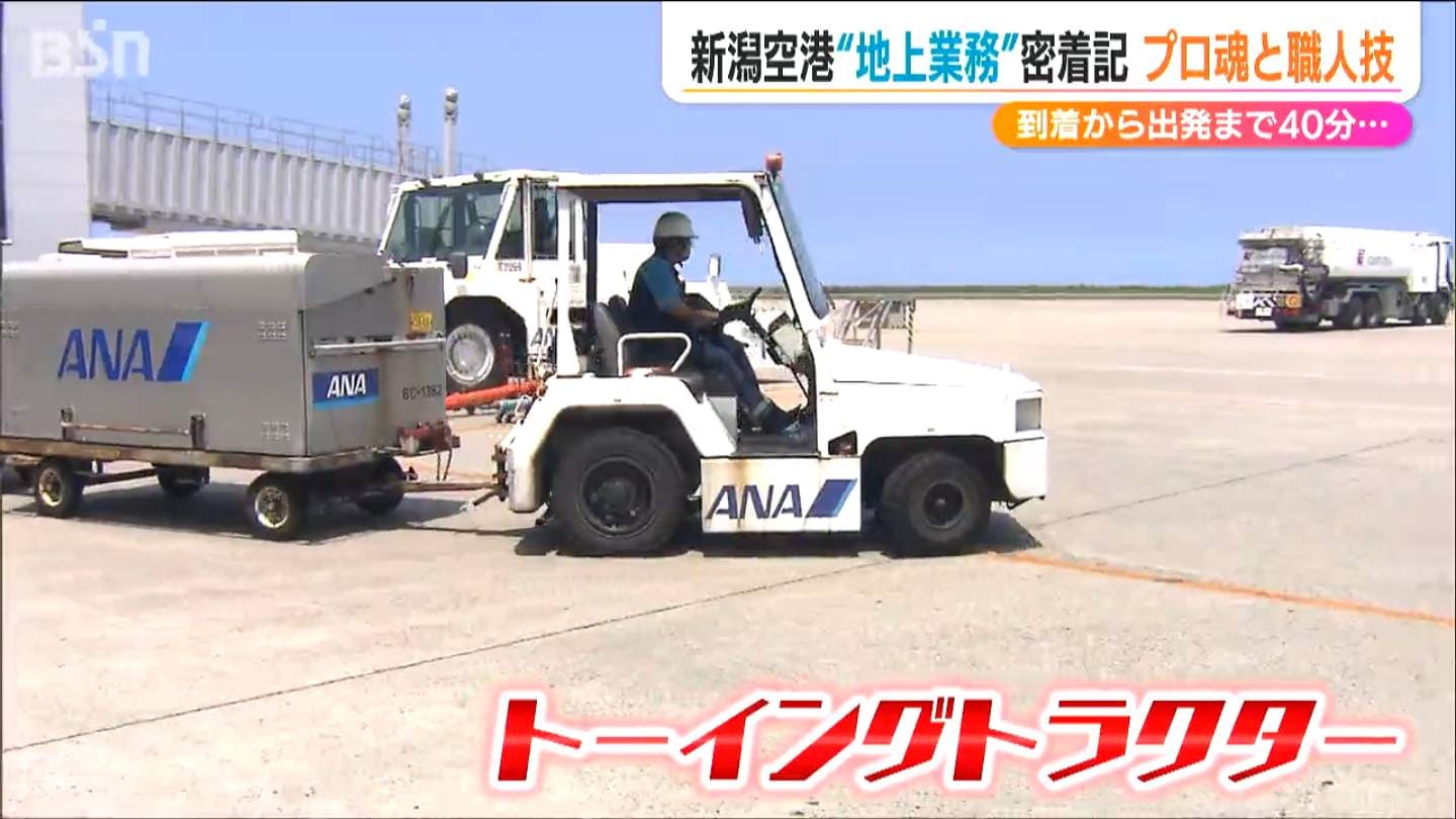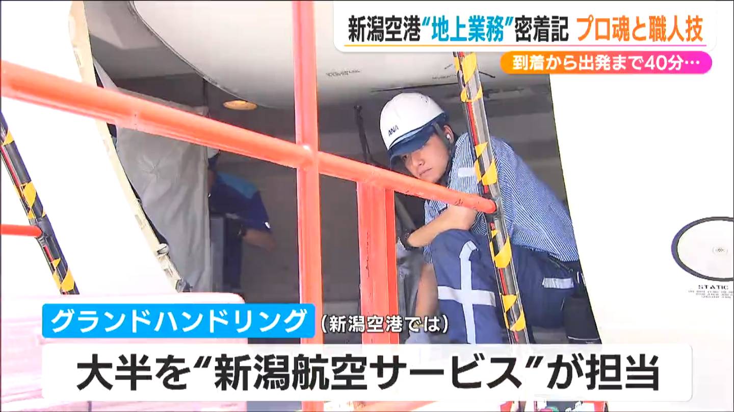 新潟空港では、グランドハンドリングの大半を新潟航空サービスのおよそ100人が作業を担っています。
