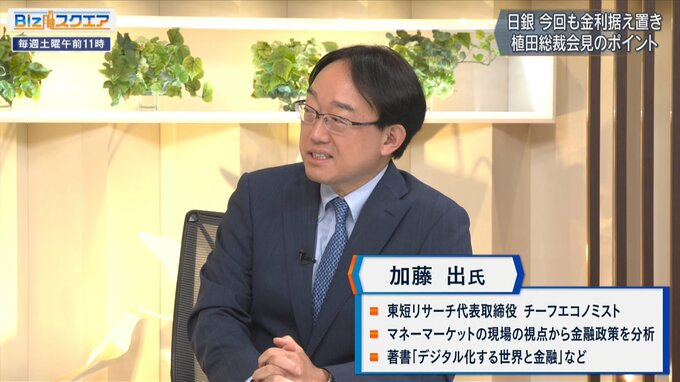 日銀の慎重なスタンスが物価高の一因になっていると加藤さんは指摘するが、植田総裁は「今の物価高は供給要因なので、利上げで対応すれば景気を冷やして所得が減る」と話す。