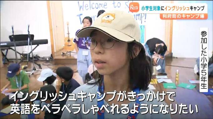 宮城県利府町のキャンプ場で小学生を対象にしたイングリッシュキャンプが開かれ、英語で自己紹介をするなどして交流を深めています。