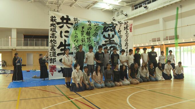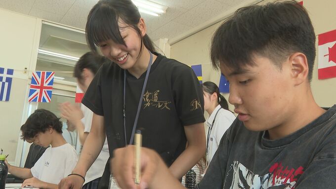 先月、山口県萩市の高校生とモンゴルの高校生が書道や海水浴で交流しました。