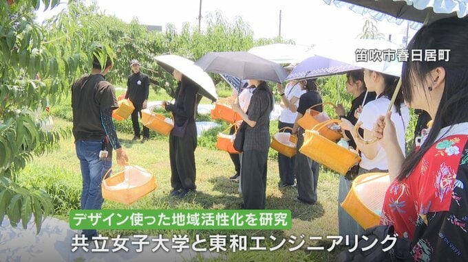 5日は建築・デザイン学部の学生12人が笛吹市内でモモの収穫体験をした後、賑わいの創出や県産モモの魅力の届け方など3つのテーマの研究成果を発表しました。