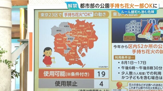 例えば大田区では、今年から区内52か所の公園で手持ち花火の施行を実施します。