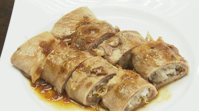 市は地元食材を使った料理を紹介する活動を進めていて「梅じょうゆだれ」がかけられた「ぶた肉のもやしロール」の試食会もありました。