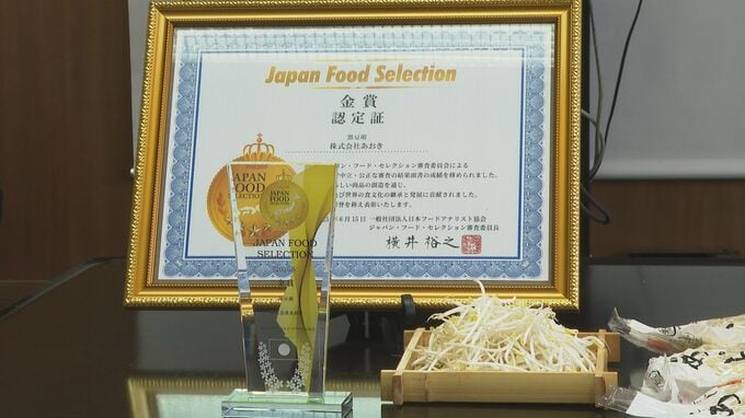 1953年に創業した「あおき」の主力商品になっている黒豆もやしは、歯ごたえと口当たりがよく高い安全水準でつくられていると評価されました。
