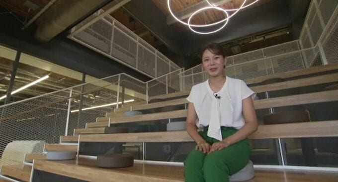 渡邉百音フィールドキャスター「この場所は5階に繋がる階段なんですが、こんな使い方もできます。観客席のようになっていてこのようにプレゼンテーションもできます」