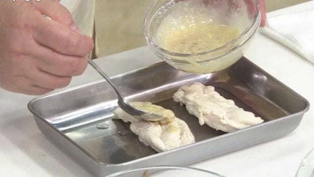 1.まず、ささみのみそマヨ焼きを作る。ささみに砂糖を適量(※分量外)すり込む。鍋に水(250mL)・塩(小さじ1)・ささみを入れて加熱し、沸騰したら2分煮てそのまま冷ます。