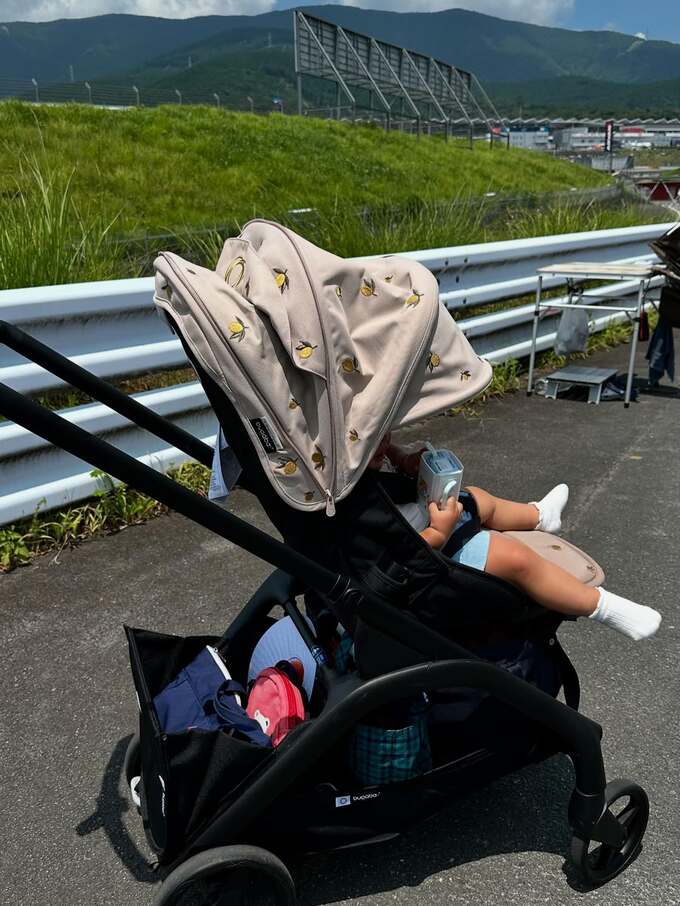 岡副さんは「暑さ対策グッズが多めだったためベビーカーと共に出動しました」と、娘のみならず多くのグッズを積んだベビーカーの写真も投稿していて、夏の子連れ移動の参考になりそうです。