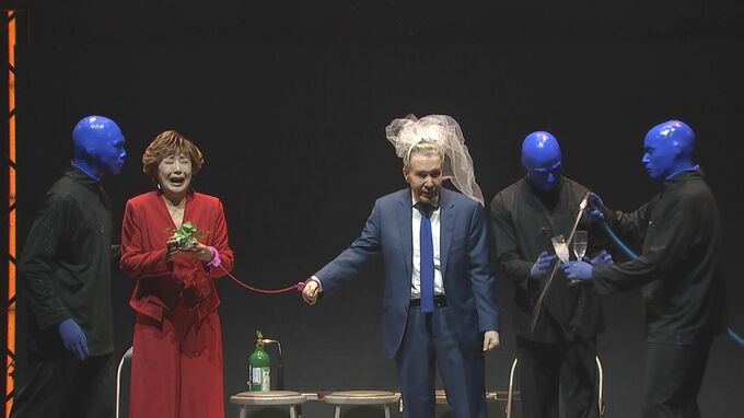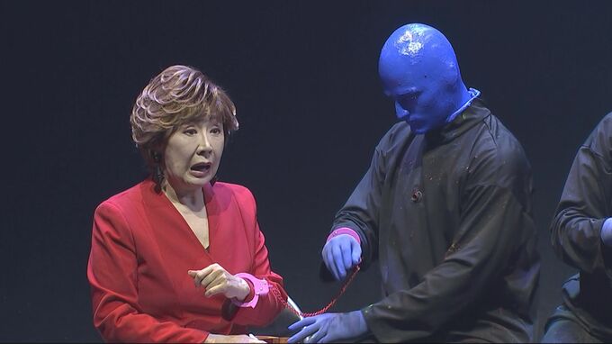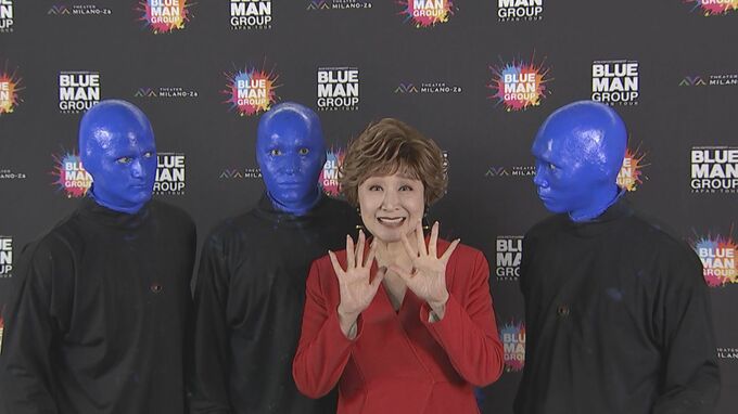 また、今回のプレスショーではブルーマンたちがランダムに観客を選び、ステージに引き上げる演出を行い、小林幸子さんとデーブ・スペクターさんがステージに参加。間近でブルーマンのパフォーマンスを体感した小林さんは "びっくりしました。間近でブルーマンを見るとすごいなと思います。目のキワ、まつげまでブルーでした” と、驚きを語りました。