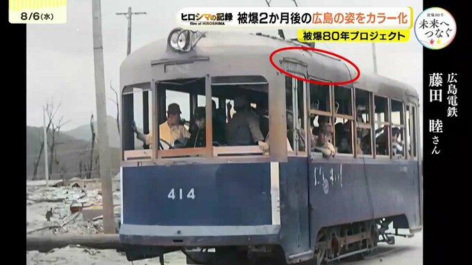 広島電鉄の社史に携わった藤田睦さんにも確認してもらいました。AIが着色した映像を当時の色だったグレートと青に補正した上で、映像を見てもらいました。