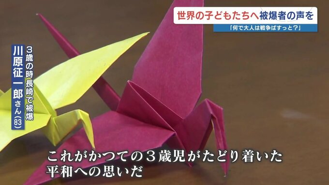 川原征一郎さん(83)「『おじちゃん、何で大人は戦争ばすっと?』来るべきものが来たと思いました。そういう話がくるチャンスを待っていたんですよ。子ども達との会話に取り入れたのが、折り紙でした。これは私が『羽ばたく鶴』を考案したんです。前を持つでしょう・・・羽ばたくんですよ。