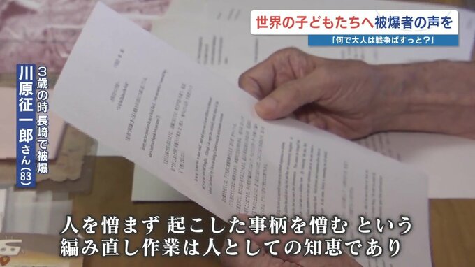 川原征一郎さん(83)「4歳に近い3歳ですから、はっきり記憶があるんですよ。テレビなんかで災害でペシャンコの状態の映像を見るでしょう。フラッシュバックして思い出すんですよ。原爆を思い出すんですね」