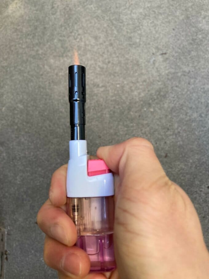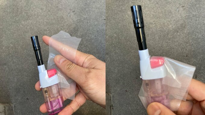 続けて、「ガス抜きは一旦、火を点けて、息を吹きかけて、そのままの状態でテープでとめるとガスが抜けます。ガス抜きはベランダ等の外でお願いします!」と呼びかけました。