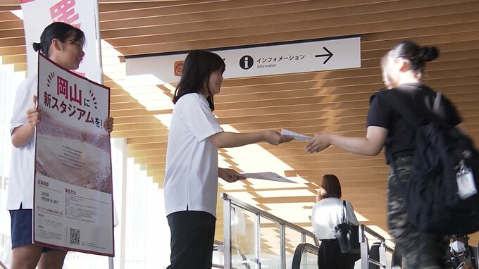 ファジアーノ岡山の新たなホームスタジアムの建設に向けて、高校生たちによる署名活動が行われました。「新スタジアム建設の署名活動を行っています」署名活動に参加したのは、岡山学芸館高校の生徒7人です。新ス…