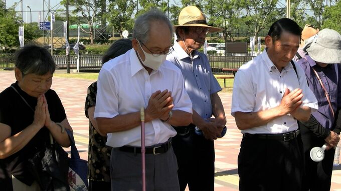 平和の鐘がある倉敷市の水島緑地福田公園です。原爆が投下された午前8時15分から鐘が鳴らされ、黙とうが捧げられました。今年は被爆から80年。参加した約50人が平和への思いを新たにしていました。