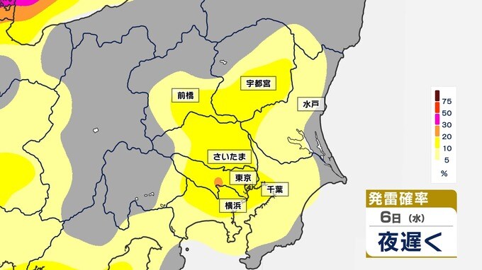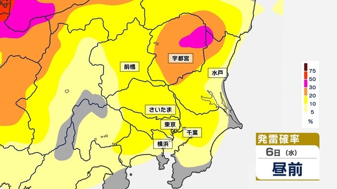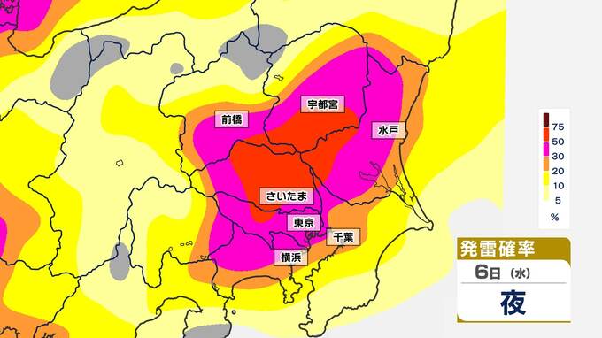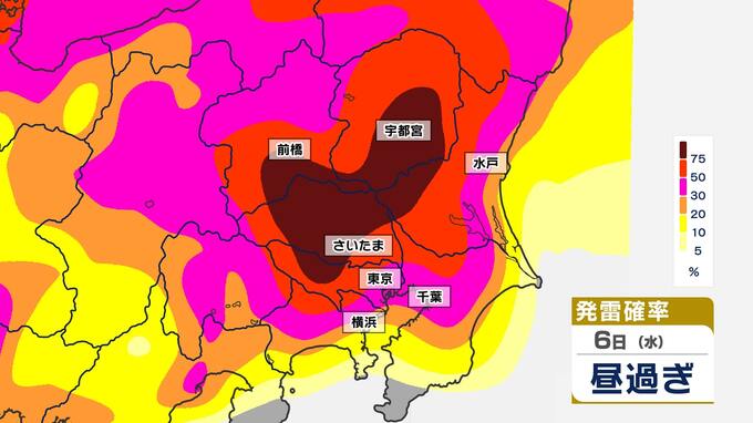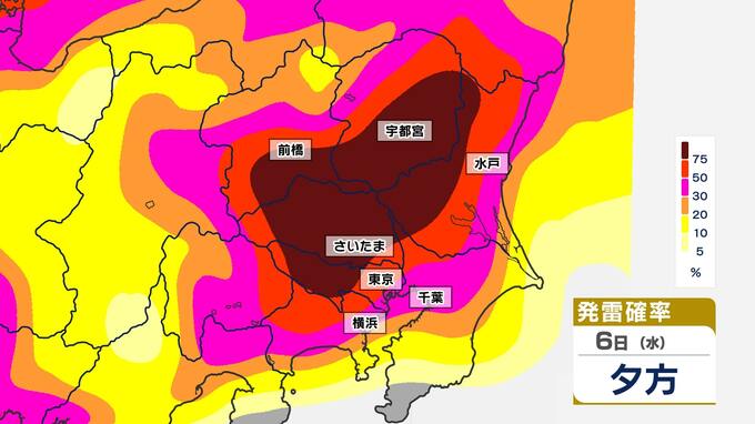 発雷確率が75%以上のところもあり、大気の状態は非常に不安定です。発雷確率のシミュレーションは画像で確認できます。