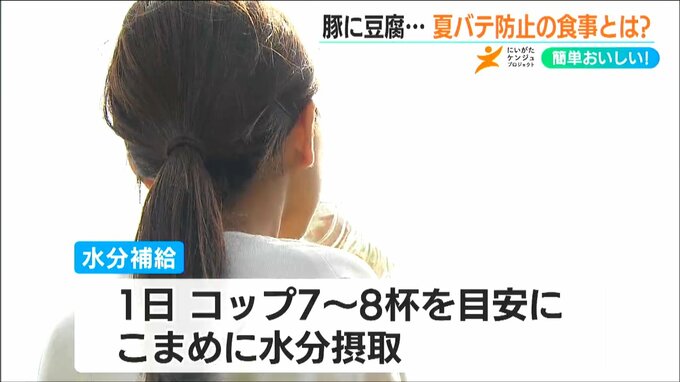 暑さによる脱水も夏バテの原因になるので、1日コップ7~8杯の水分をこまめに飲むことを心がけましょう。