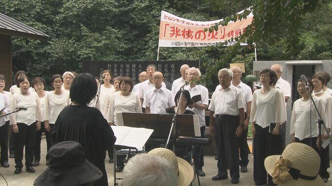 平和への祈りは、福島県内でも捧げられました。核兵器廃絶を願い、灯され続ける「非核の火」。楢葉町の宝鏡寺では、原爆が投下された午前8時15分に合わせ、黙とうが捧げられました。核兵器廃絶と原発事故の教訓を伝える集会には、全国からおよそ100人が集まりました。