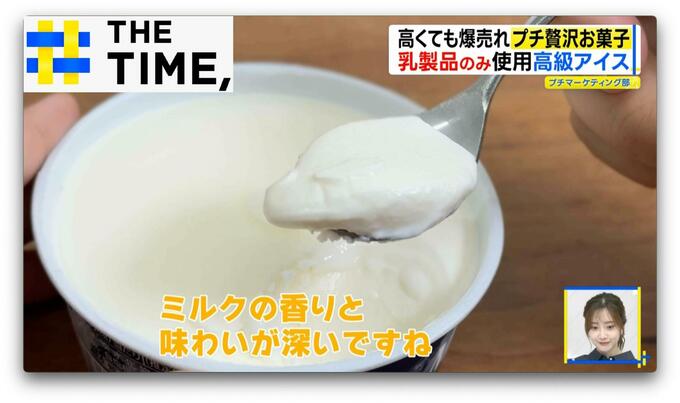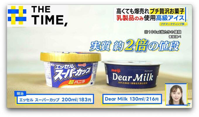 定番のアイス「エッセル スーパーカップ」(明治/200ml・183円)の“実質約2倍の価格”とプレミアムなのが、2024年に発売された「Dear Milk」(同/130ml・216円)です。