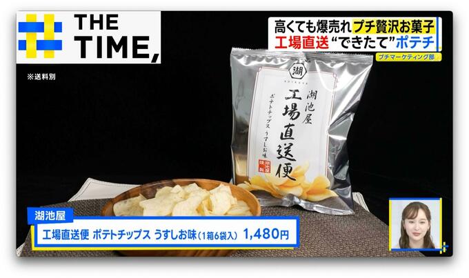 期間限定のネット販売で、累計900万食売れるほど話題となっているのは、湖池屋の「工場直送便 ポテトチップス うすしお味」(1箱6袋入・1480円※送料別)。