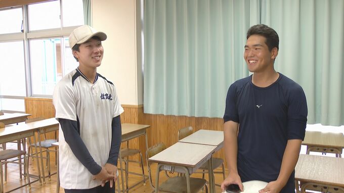全員野球のチームを陰で支える選手がいます。3年生の坂田悠真(さかた・ゆうま)選手と北島宙和(きたじま・そな)選手。